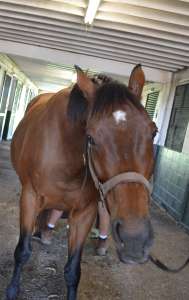 2012 Bay Thoroughbred gelding, by SHARP HUMOR out of TAMBOORENSNSHAMPAN by DEERHOUND, bred by Repole Stable, Inc., transferred from New Vocations in 2017.